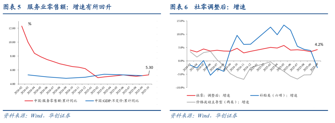 2)服务消费。将服务业零售额增速作为服务消费的观察。1-10月,服务业零售额累计增速为5.3%,好于前值5.2%。