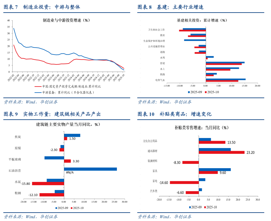 10月表现弱于经济的主要是建筑链、生产性投资以及补贴类商品消费。