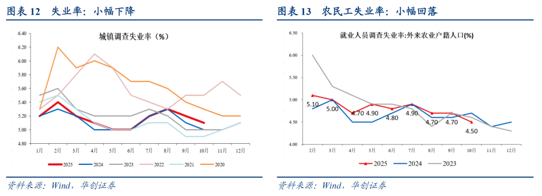 3)限额以下商品消费表现偏弱。10月,限额以下商品(不含餐饮)增速为3.74%,前值为3.77%。考虑到1-9月累计增速为4.24%,以及10月双节因素,10月增速略偏弱。