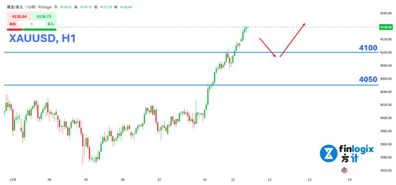 美国政府关门曙光出现,市场情绪迅速回升,但在高估值与信心不足的背景下,黄金凭借避险与修正双重优势强势反攻,一举突破4100美元!