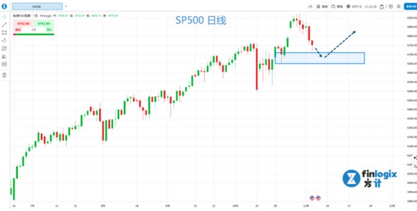技术面:从日线走势上来说,SP500多头格局尚未被逆转,而市场悲观情绪初步看来有点过度反应,价格若修正到潜在的支撑区(6650~6710)企稳,有潜在做多的机会,该支撑区是近期上涨波的50%费式数列、前一波修正波的等幅距离以及近期支撑/阻力互换区汇聚的地方。