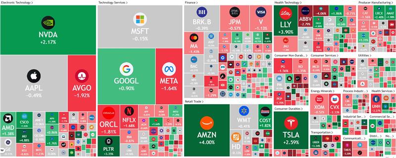 AI科技板块盘前消息面不断,谷歌发债融资,微软向阿联酋投资AI基建,亚马逊与OpenAI签署算力协议等,令英伟达与亚马逊股价盘前大涨。开盘后科技板块整体冲高。